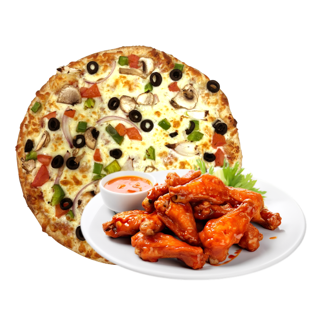 1 Large Pizza(3Toppings) 8 Chicken Wings 1 Dipping Sauce